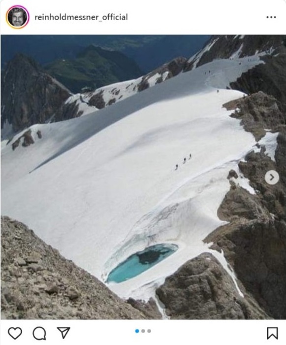 Eisendle però non aveva foto a corredo di questa scoperta, Gli esperti avevano peraltro smentito che un simile deposito di acqua di fusione potesse avere a che fare con il distacco del seracco di domenica 3 luglio sulla Marmolada, costato la vita a 11 persone.