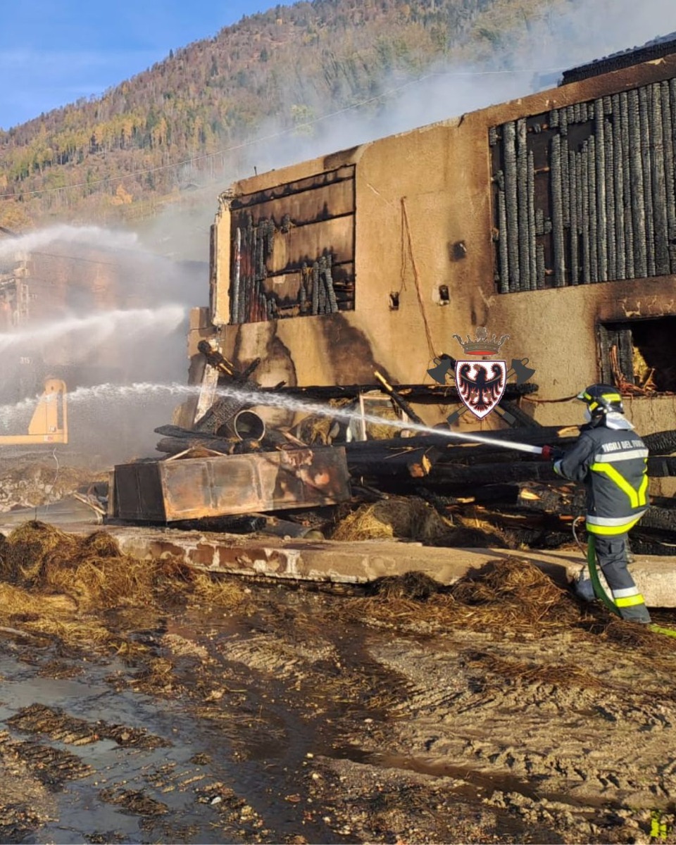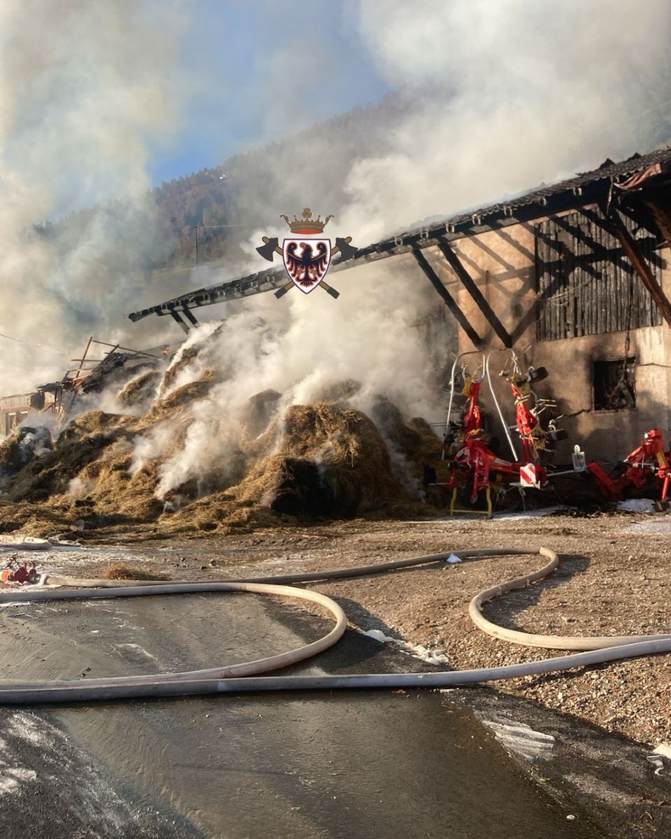 A supporto delle squadre volontarie è arrivato anche il corpo permanente di Trento, con mezzi e attrezzature speciali per fronteggiare l’incendio, che ha interessato una grande quantità di fieno e materiale agricolo altamente infiammabile.