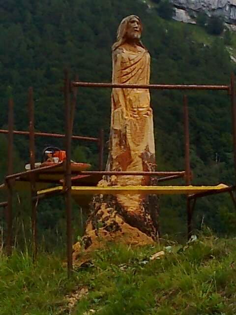 E’ questa l’ultima opera di Mauro Corona che ha scolpito il tronco solo con l’utilizzo di una motosega.