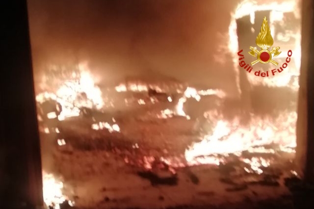 Uno di questi edifici è stato completamente distrutto dalle fiamme, mentre i vigili del fuoco, presenti con otto squadre, stanno lavorando sodo per circoscrivere il fuoco e impedirne la propagazione al secondo capannone vicino.
