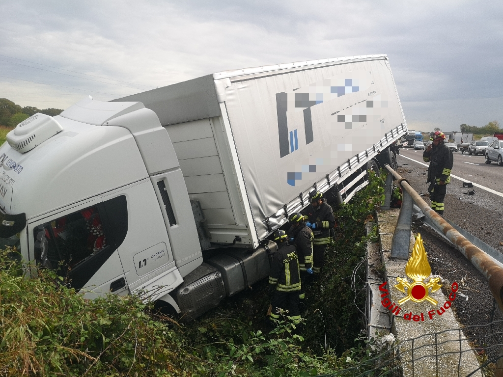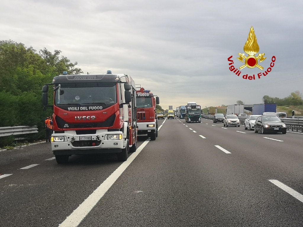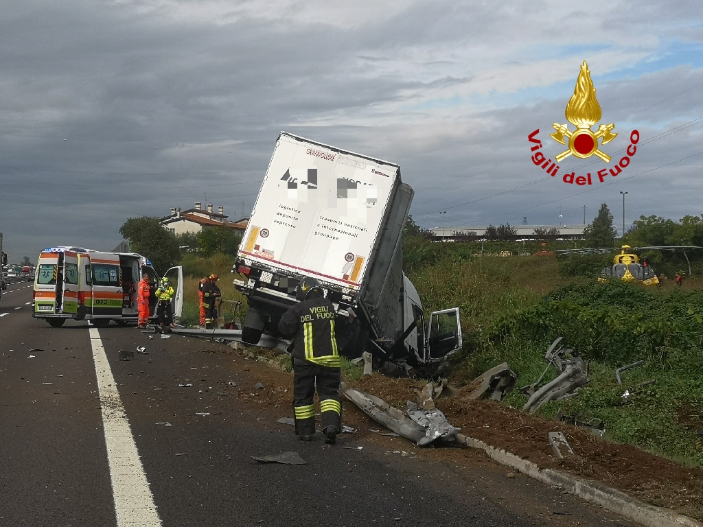 Lo scontro, avvenuto al km 626.2 direzione Ovest, tra i caselli di Sommacampagna e Peschiera del Garda, ha visto coinvolto un mezzo pesante, che dopo l'urto ha divelto circa 100 mt di guard rail finendo fuori strada, oltre a 3 vetture e un furgone.