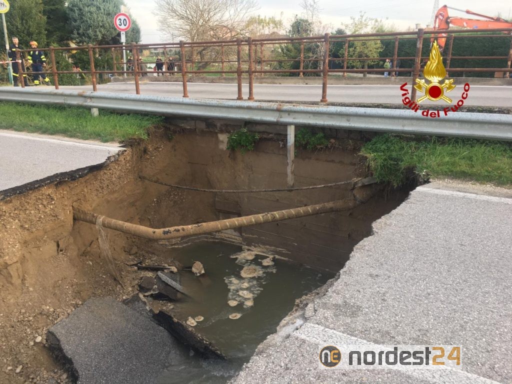 In pochi attimi la strada ha ceduto e 10 metri di carreggiata sono stati divorati dalla voragine.