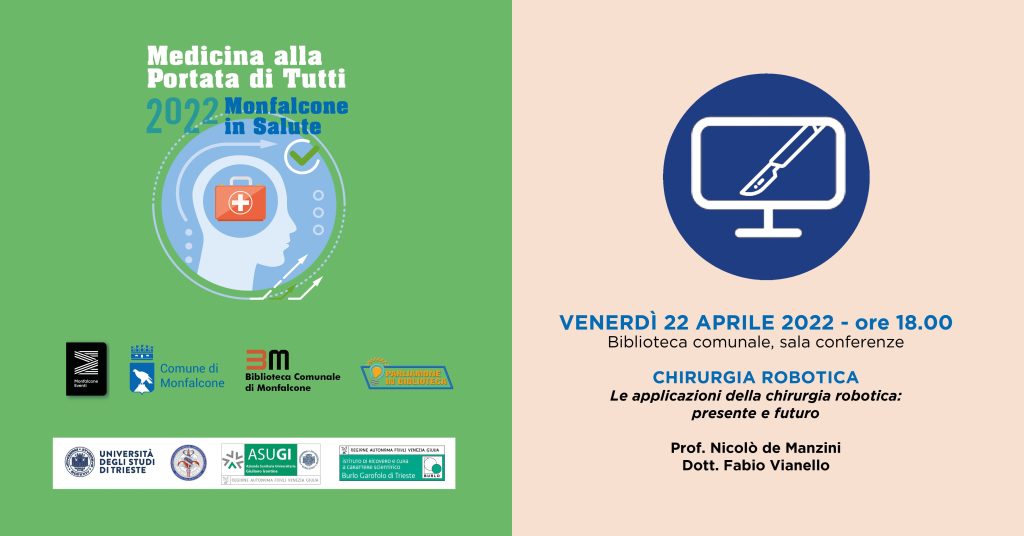 La rassegna “Monfalcone in Salute” dà appuntamento venerdì 22 aprile alle ore 18.00 alla Biblioteca Comunale di Monfalcone, con la partecipazione del Professor Nicolò de Manzini, Università degli Studi di Trieste e Direttore UCO Clinica Chirurgica Trieste e il Dottor Fabio Vianello, Università degli Studi di Trieste e Direttore SC Urologia Gorizia.