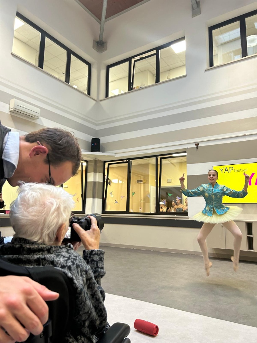 Le ballerine si sono alternate in coreografie di gruppo e assoli di danza classica, mentre i residenti, accompagnati da fotografi professionisti, hanno potuto cimentarsi nello scatto, immortalando pose, gesti e dettagli delle danzatrici. Un’esperienza coinvolgente, pensata per stimolare partecipazione e creatività, ma anche per costruire un ponte emotivo tra arti diverse.