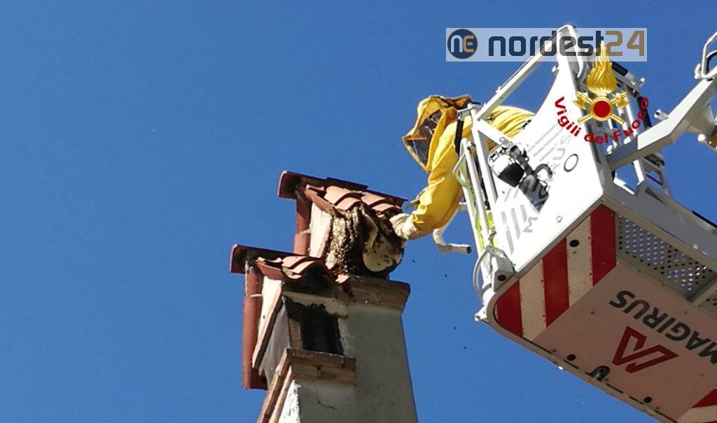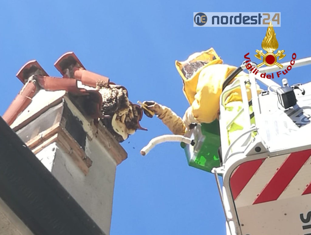 Sabato mattina, i vigili del fuoco sono intervenuti in Via Monte Antelao a Mestre per dare assistenza ad un apicultore per recuperare un alveare di api formatosi sul comignolo di un’abitazione dopo una sciamatura.