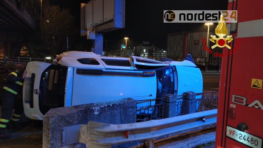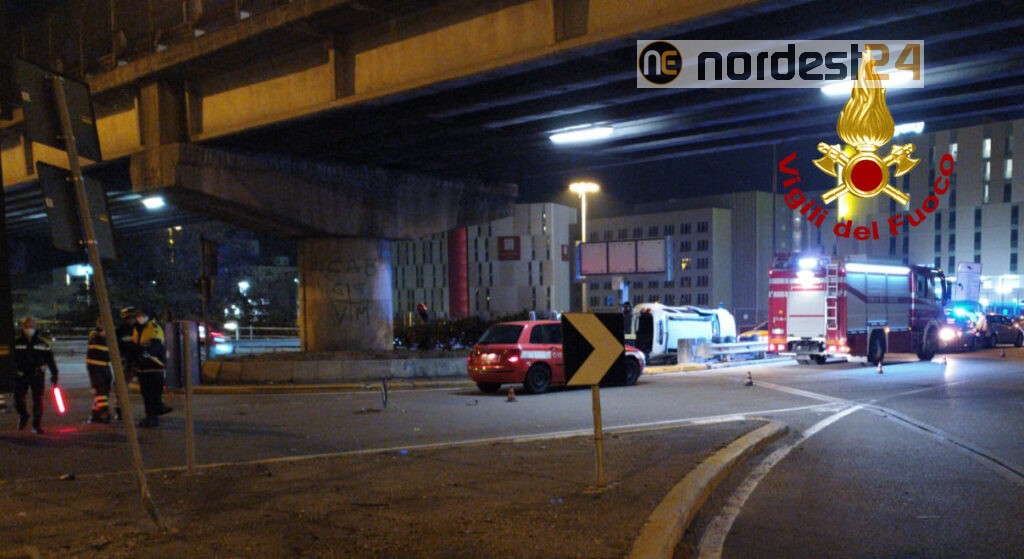 Poco prima delle 18:30 di domenica, i vigili del fuoco sono intervenuti sulla rampa Rizzardi in direzione di Corso del Popolo a Mestre per un’auto finita rovesciata su un fianco, dopo la perdita di controllo dell’autista rimasto ferito.