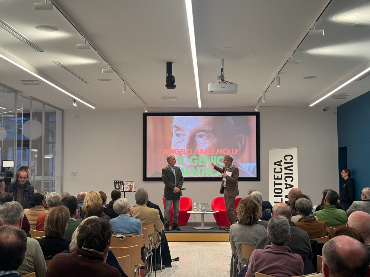 MESTRE Lunghi applausi, entusiasmo ed emozione nella serata di ieri – 11 marzo – alla Biblioteca civica VEZ di Mestre, quartier generale della Rete Biblioteche del Comune di Venezia che, attraverso una rassegna in quattro tappe, rende omaggio, a 25 anni dalla sua scomparsa, ad uno degli imprenditori italiani più geniali e innovativi, Angelo Dalle Molle, il “padre” visionario dell’Intelligenza Artificiale, della mobilità elettrica e del car sharing, ma anche - insieme ai suoi fratelli, con Grandi Marche Associate – l’uomo che lasciato traccia nelle abitudini degli italiani, portando al successo il Cynar, liquore “salutare” a base di carciofo, e inventando una campagna pubblicitaria che negli anni Settanta ha fatto storia, grazie all’attore Ernesto Calindri e al suo tavolino, immerso nel traffico metropolitano. Nato proprio a Mestre, nel 1908, Angelo Dalle Molle è stato precursore oggi riconosciuto dai principali artefici dei sistemi contemporanei di intelligenza generativa, unico europeo fra tanti “padri” statunitensi dell’Intelligenza Artificiale. A inaugurare la rassegna, nella serata di ieri, il giornalista Massimo Cerofolini, autore e voce del programma -cult “Eta Beta” su Rai Radio1, e autore del podcast di Rai Play “Il genio dimenticato” che ha letteralmente permesso di riscoprire Angelo Dalle Molle, dopo due decenni di oblio seguiti alla sua morte. Introdotto da Barbara Vanin, responsabile del settore Biblioteche e Servizi ausiliari del Comune di Venezia, Massimo Cerofolini è stato “mattatore” della serata, in dialogo con il giornalista veneto Ugo Dinello, firma nota dell’approfondimento d’inchiesta. Insieme hanno dato vita a una appassionante conversazione scenica che ha restituito la personalità di Angelo Dalle Molle e l’obiettivo del suo impegno: il benessere e costante miglioramento della qualità della vita umana, come sottolinea il titolo della rassegna, “L’impresa della qualità della vita. L’eredità di Angelo Dalle Molle”, in programma a VEZ fino al 15 aprile, realizzata a cura di VolpeSain. Nel corso della serata anche un paio di interventi del pubblico: sono intervenuti infatti due testimoni diretti dell’azione di Angelo Dalle Molle, il suo collaboratore Enzo Di Bernardo, oggi segretario generale del Centro Studi della Barbariga fondato dall’imprenditore, e il meccanico Gianfranco Bruson, che aveva realizzato il telaio del primo prototipo di autovettura elettrica progettato nei laboratori di Angelo Dalle Molle.