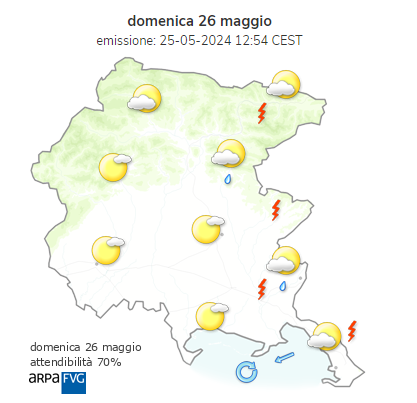 Il 26 maggio 2024 si preannuncia una giornata caratterizzata da un'ampia varietà di condizioni meteorologiche in tutta la regione del Friuli Venezia Giulia. Le previsioni indicano un clima instabile c...
