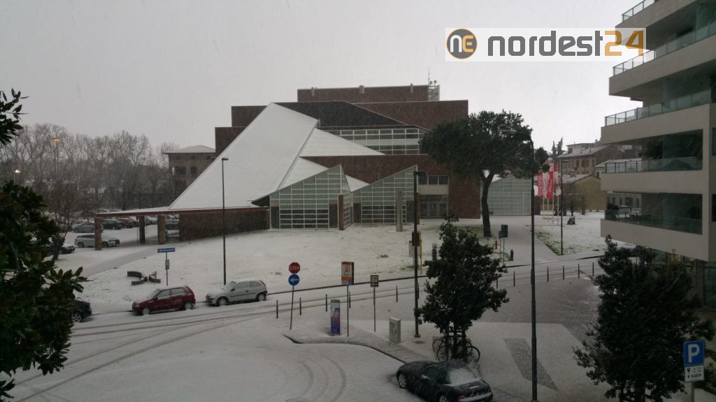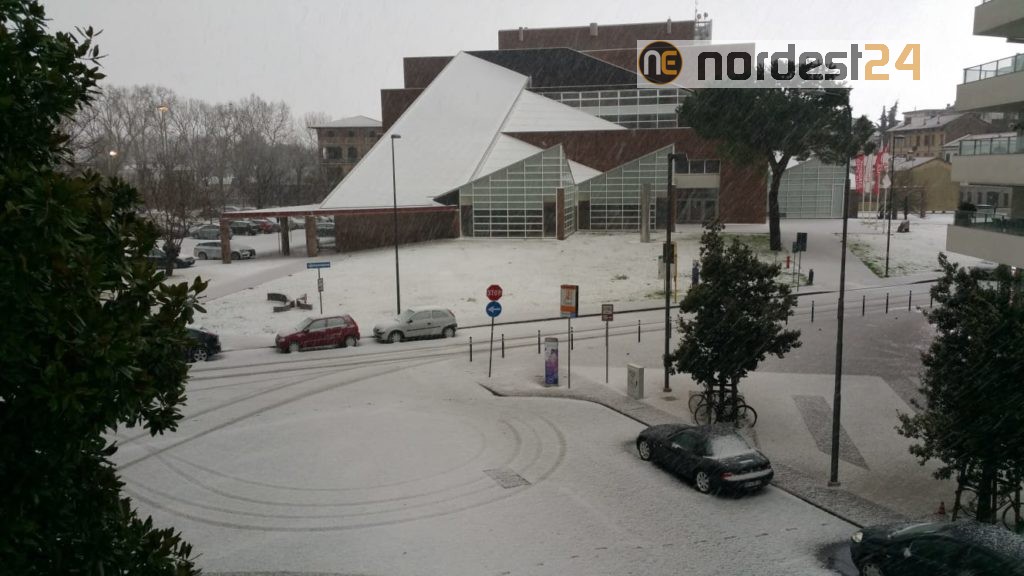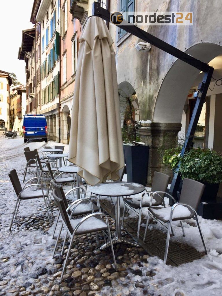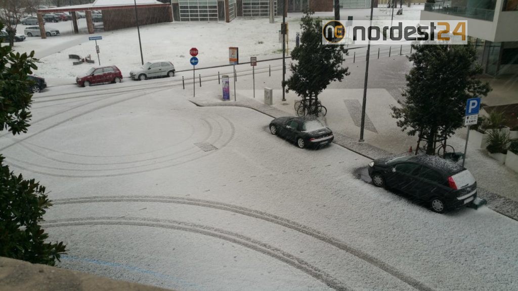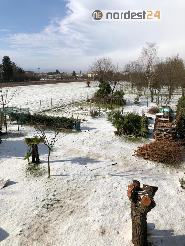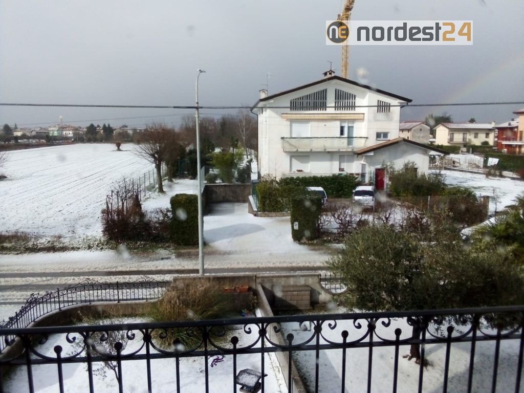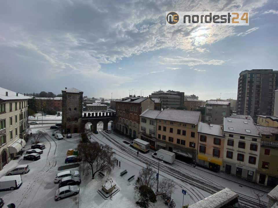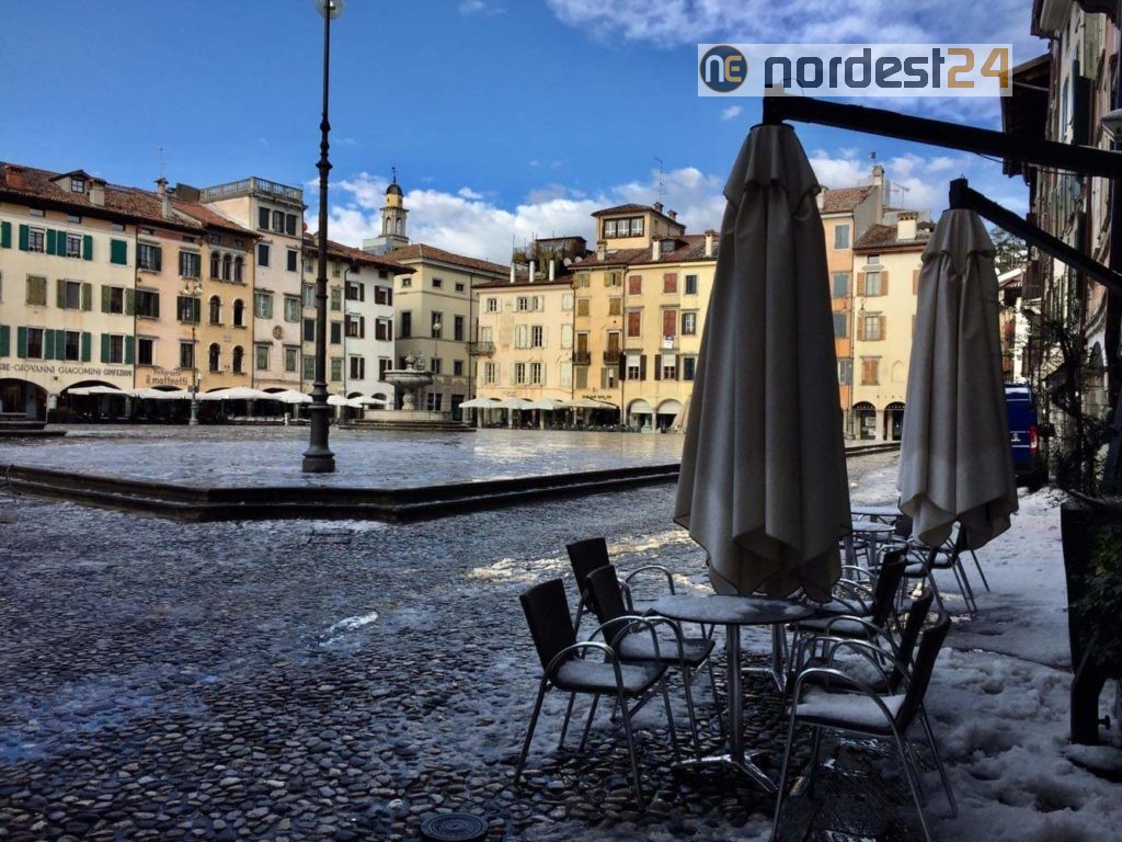 Nel primo pomeriggio di oggi poco dopo le ore 14 una precipitazione intensa mista tra grandine e neve ha ricoperto tetti e strade colorando di bianco numerose città della provincia di Udine.