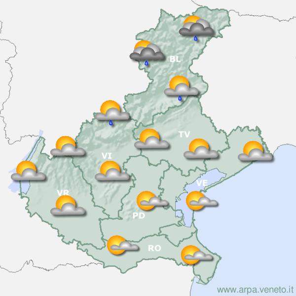 In pianura: prevalenza di tempo asciutto, con la possibilità di occasionali piovaschi pomeridiani, in particolare sulla fascia pedemontana e nella pianura nord-orientale.