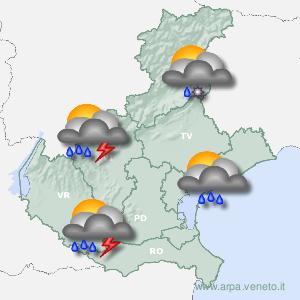 sulle pianure occidentali e le Prealpi: si osserverà un progressivo aumento delle nubi, con piogge leggere che inizieranno a cadere nel pomeriggio.