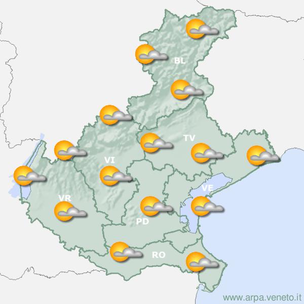 Fino a martedì il Veneto godrà di una stabilità atmosferica grazie alla persistenza di una circolazione anticiclonica. Le temperature continueranno a salire, toccando punte superiori alla media, in particolare durante le ore diurne e martedì. Da mercoledì, però, un cambiamento è previsto con l'arrivo di una depressione da nord-ovest, attualmente situata tra Gran Bretagna e Groenlandia, che influenzerà il meteo regionale portando piogge già da giovedì.