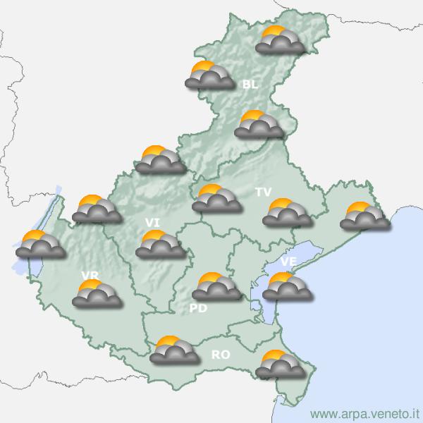 Le precipitazioni saranno modeste, con un limite delle nevicate che si innalza tra i 2000 e i 2300 metri sulle Dolomiti, e oltre i 2200 metri sulle Prealpi. Le temperature mostreranno un incremento rispetto ai giorni precedenti.