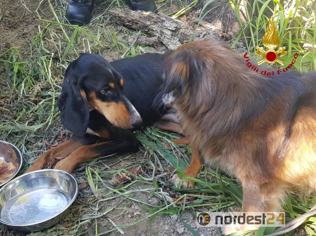 Durante tutte le operazioni di soccorso “Teo” non si è mai allontanato dal nuovo amico, che ha praticamente salvato, scorgendolo in mezzo alla vegetazione.