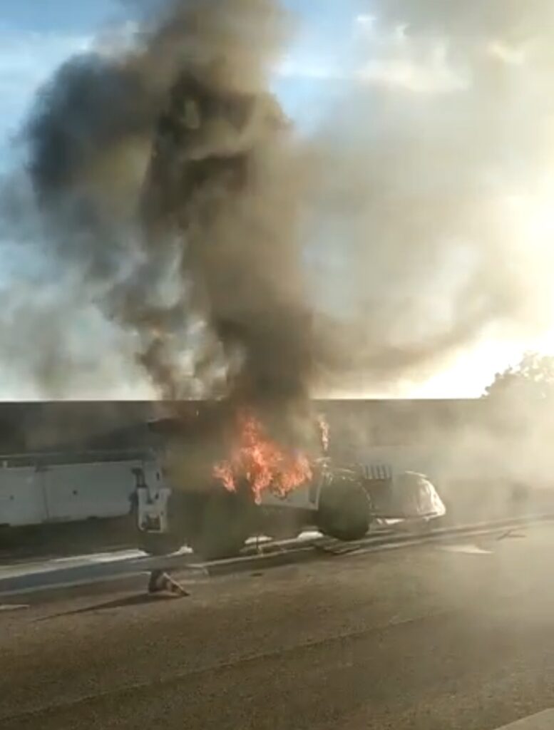 Si è subito alzata in cielo un'alta colonna di fumo nero denso visibile da lontano. Immediata la chiamata al numero unico dell'emergenza che sta inviando sul posto vigili del fuoco oltre a personale di Autovie Venete.