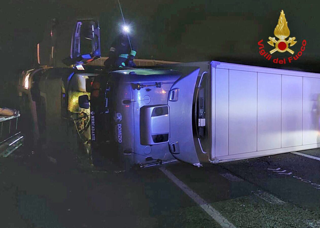 Intervento dei vigili del fuoco stamattina alle 6 sull’autostrada A22 al km 224, tra gli svincoli di Affi e Verona Nord, per il ribaltamento di un mezzo pesante che trasportava mele: ferito l’autista.
