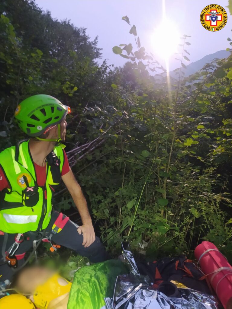I soccorritori hanno raggiunto il giovane verso le 19:40. Dopo averlo coperto e prestato le prime cure, hanno comunicato la posizione all’elicottero di Trento Emergenza. Questo ha effettuato un intervento di verricellamento, trasportando l’equipe medica e il tecnico di elisoccorso nello spiazzo preparato dai soccorritori tra la vegetazione. Il ragazzo è stato imbarellato e trasportato verso le 21 all'ospedale di Treviso. Durante la caduta, aveva perso conoscenza e, al risveglio, si era trascinato nel vallone fino a ritrovare il suo zaino, da cui aveva preso dell’acqua per dissetarsi, rimanendo poi immobile in attesa dei soccorritori.