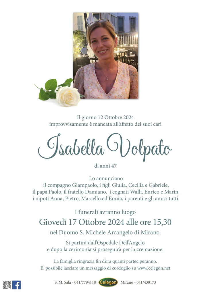 La città di Mirano è stata colpita da un grave lutto per la prematura scomparsa di Isabella Volpato, 47 anni, nota imprenditrice e madre. Isabella, compagna di Giampaolo Bortoluzzi, gestiva con lui il celebre locale . Lascia nel dolore il marito e i tre figli: Giulia, Cecilia e Gabriele, oltre al fratello Damiano e alla sua famiglia.