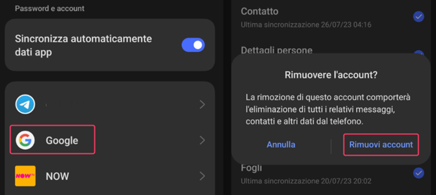 Rimuovere un account Google da Android significa eliminare l'accesso a quell'account sul dispositivo, senza però cancellarlo dai server di Google. È una soluzione pratica se hai intenzione di vendere o regalare il telefono/tablet.