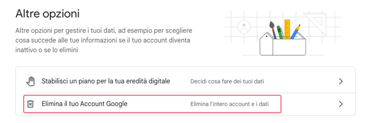 Prima di cancellare un account Google, è consigliabile creare un backup completo. Google offre uno strumento chiamato Google Takeout, che permette di scaricare una copia dei propri dati.