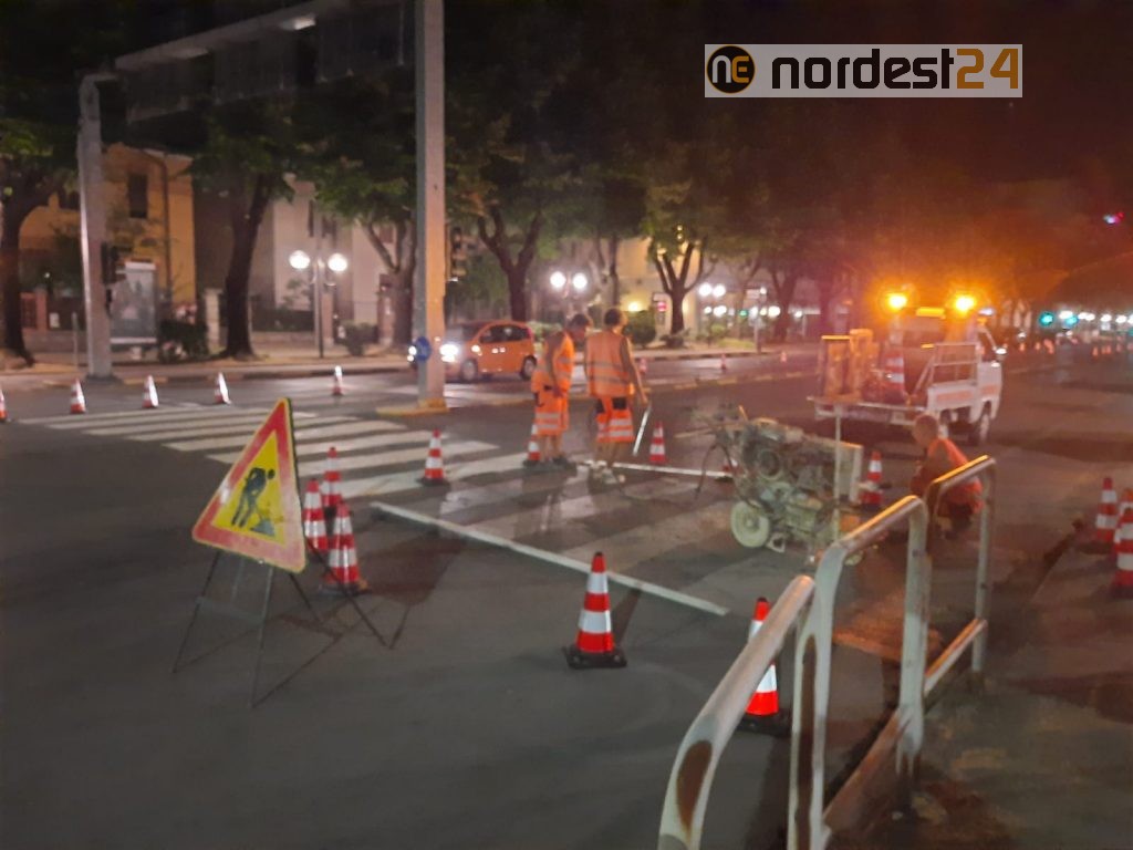 I lavori sono stati effettuati in tempo da record e il Comune ha scelto di effettuare gli interventi durante l’orario serale per agevolare gli impiegati e lo svolgimento degli stessi, in quanto nel periodo estivo sono in grande difficoltà a fronte delle alte temperature che complicano la realizzazione di questi specifici interventi. L’operazione effettuata in questi orari permette una resa migliore dell’asfalto e delle vernici, oltre al fatto che si garantisce una migliore sicurezza stradale grazie al minor traffico.