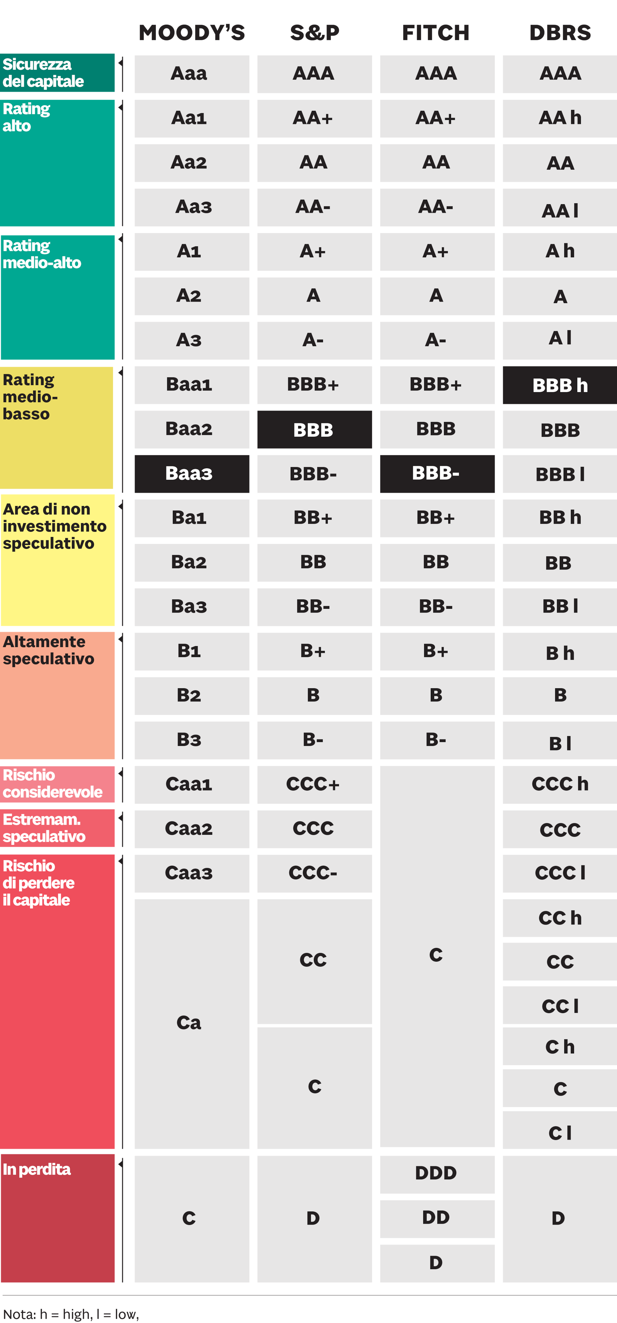 LE PAGELLE DELLE AGENZIEPer ora il giudizio resta Baa3 con outlook stabile. Un’altra agenzia, Dbrs, conferma il rating, al ribasso il trend2' di letturaL'agenzia Moody's rinvia l'esame. In una nota comunica di aver aggiornato il suo calendario e che quind