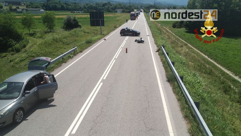 Alle 13:40, i vigili del fuoco sono intervenuti lungo la SP1 Frazione Cavassico Inferiore a Trichiana, Borgo Val Belluna in provincia di Belluno, per un incidente tra un’auto e una moto.