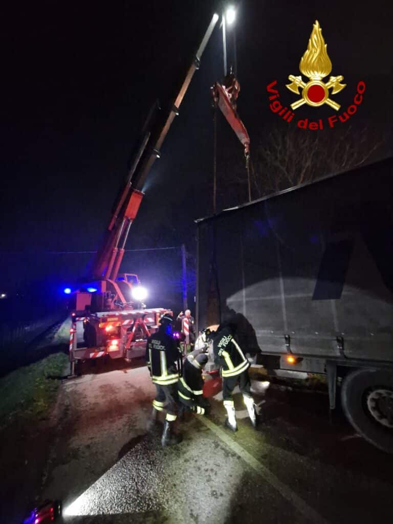 A Motta di Livenza, intervento dei Vigili del Fuoco per mettere in sicurezza un autoarticolato a rischio rovesciamento sulla SP 163.