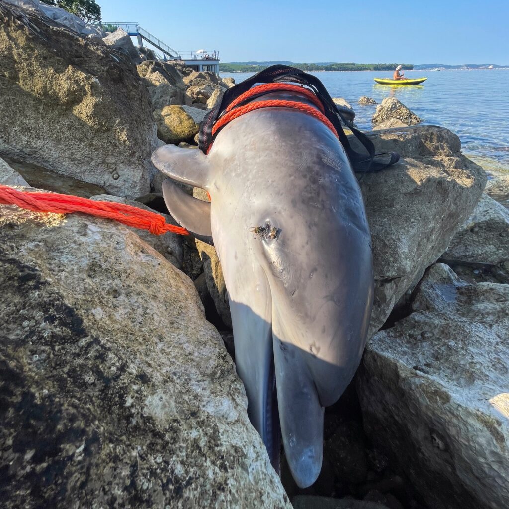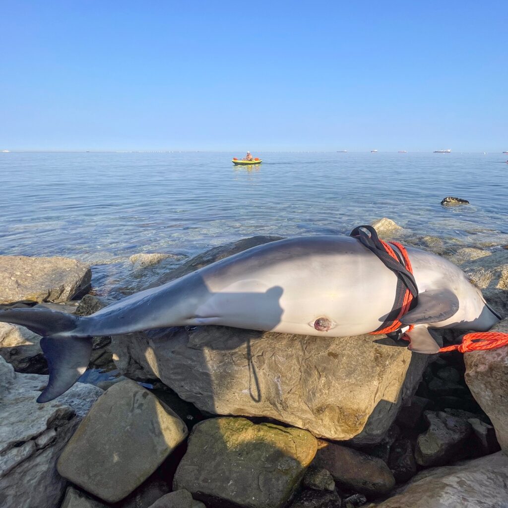 Triste scoperta a Muggia: cucciolo di tursiope trovato senza vita tra gli scogli