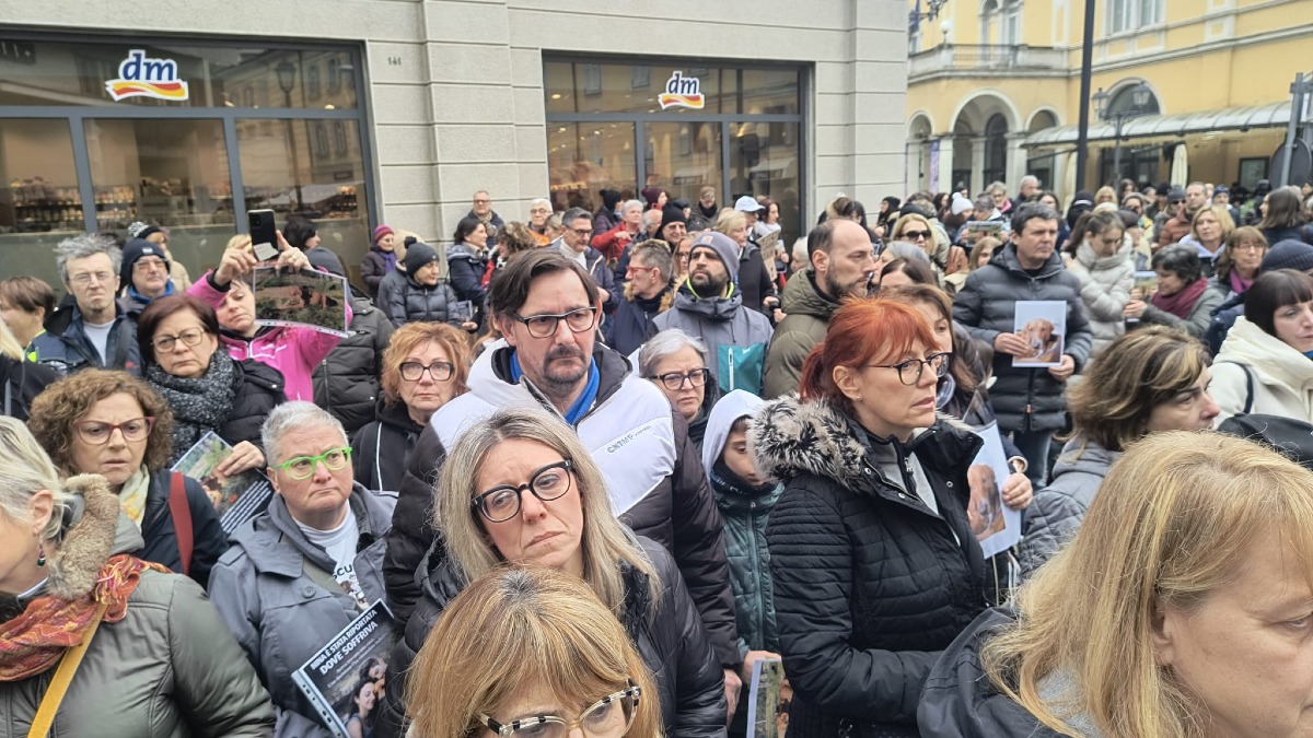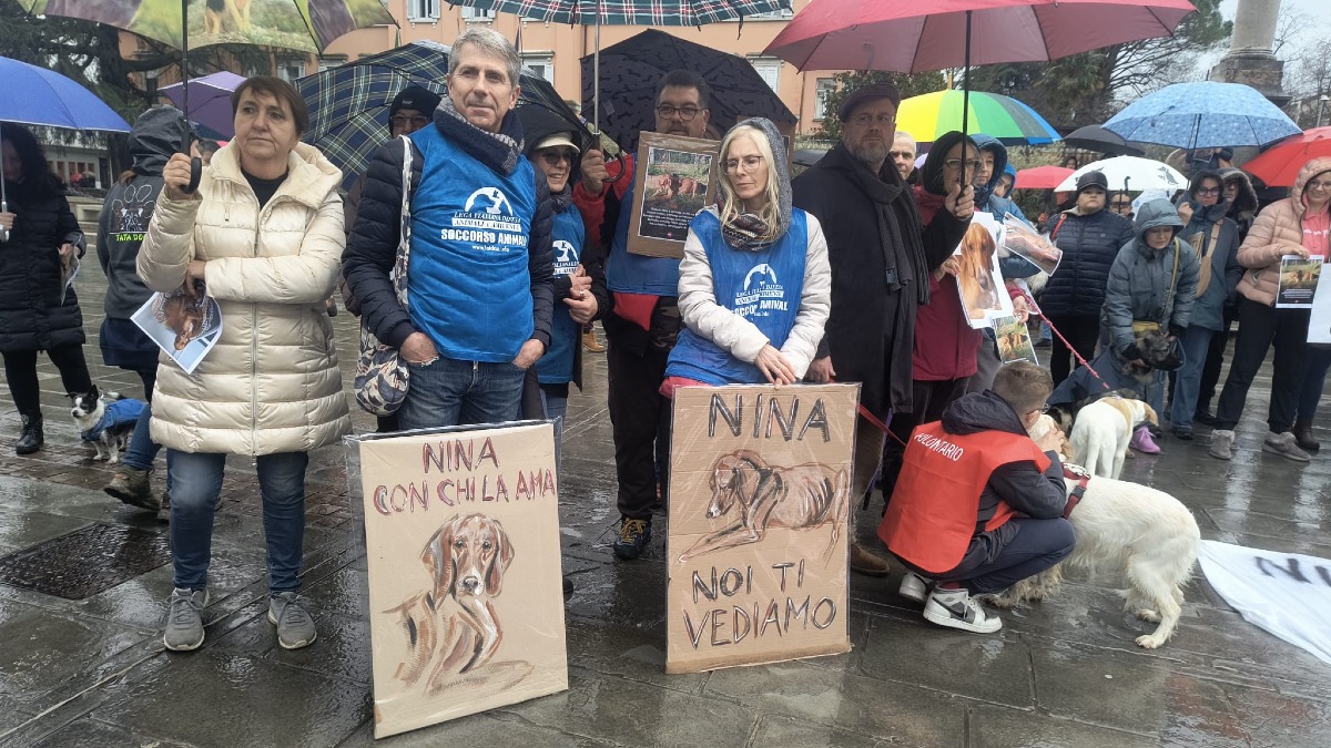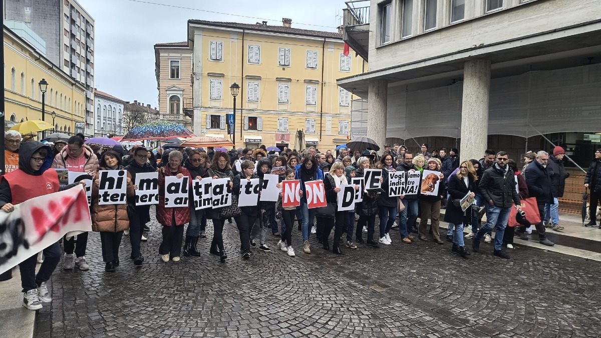 La pioggia non ha fermato la folla di cittadini che si è radunata stamani a Gorizia per chiedere giustizia per Nina, la cagnolina al centro di una complessa vicenda giudiziaria. Circa trecento persone hanno partecipato alla manifestazione silenziosa che ha attraversato Corso Verdi e via Oberdan, concludendosi in Piazza Vittoria.