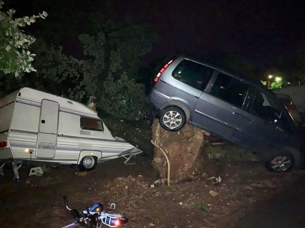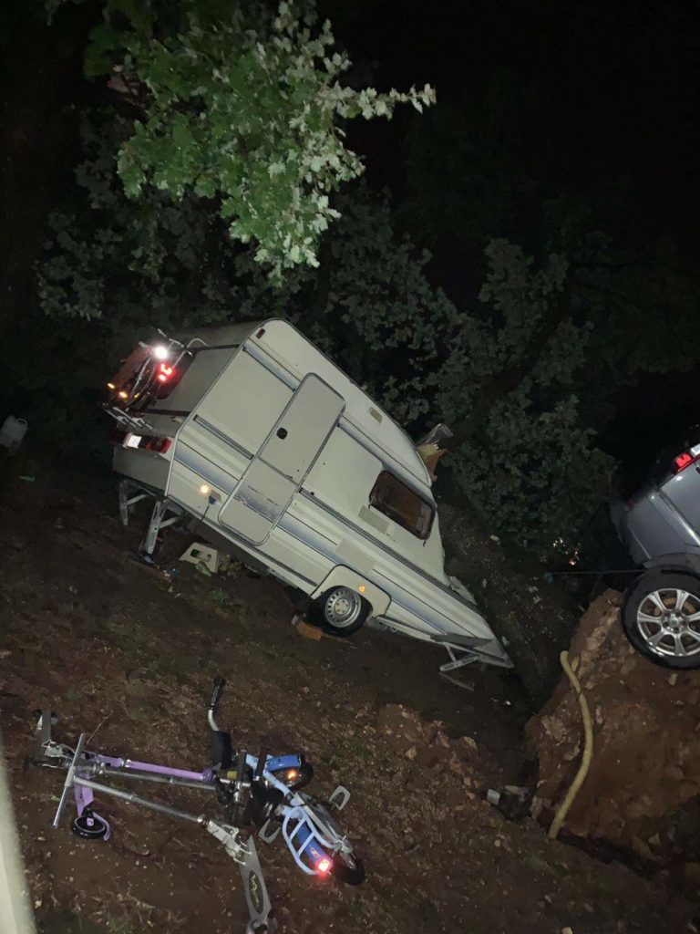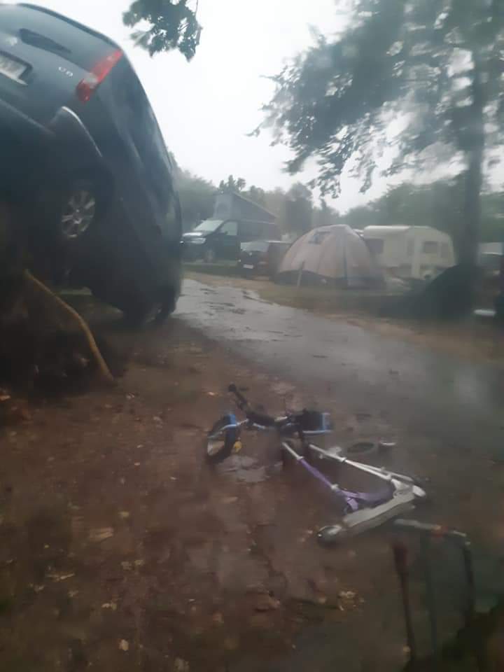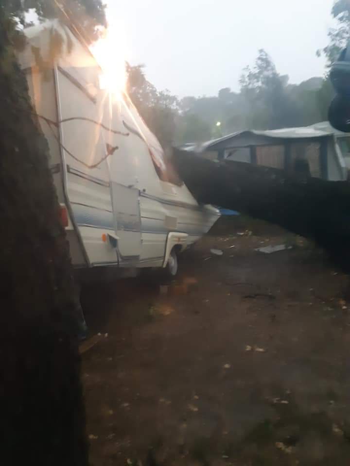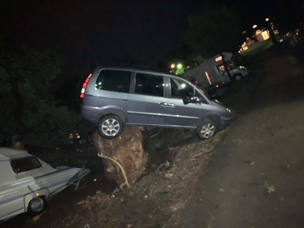 A giudicare dalle foto che abbiamo ricevuto, alcuni alberi sono caduti sulle roulotte e allo stesso tempo ha divelto un'autovettura.