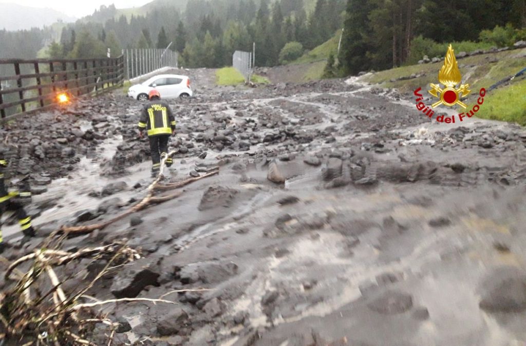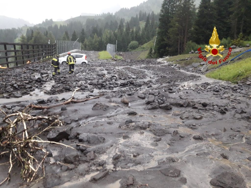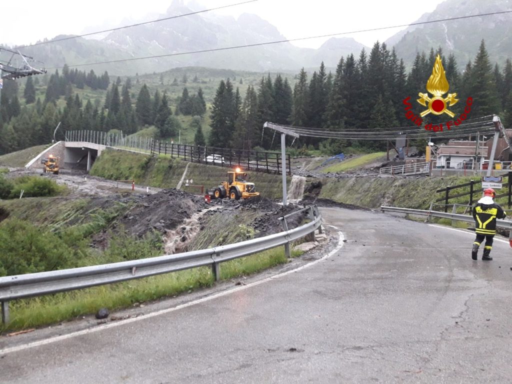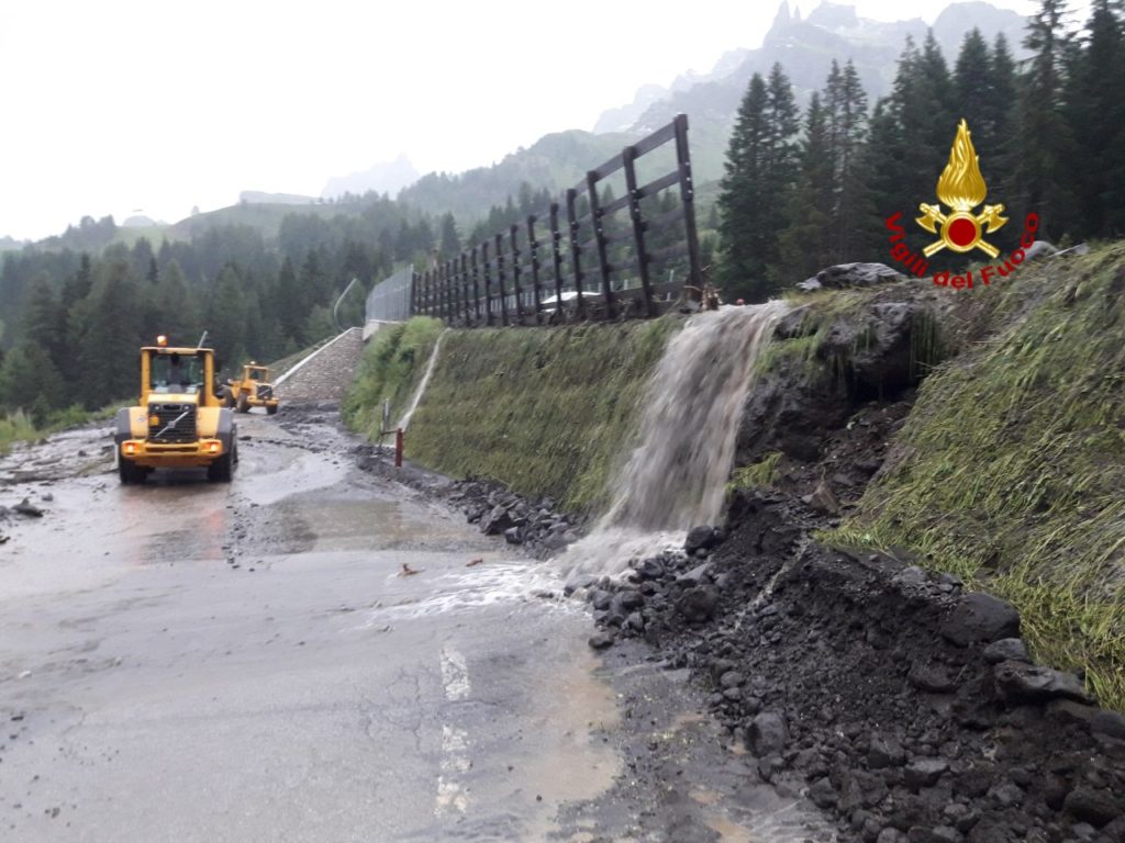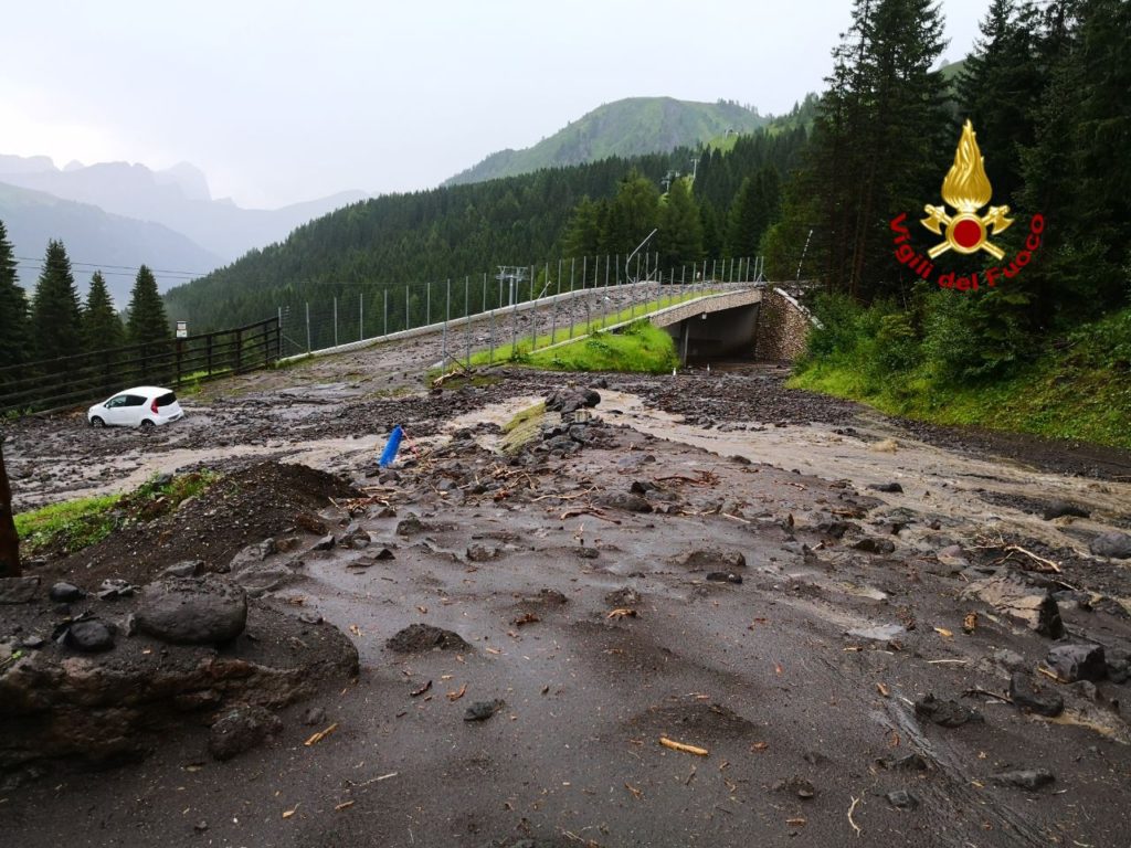 Le piogge intense hanno provocato diversi smottamenti in più punti, che hanno interessato in particolare la SR 48 da Arabba verso passo Pordoi, provocando una colata detritica importante nei pressi del ponte Vaz.