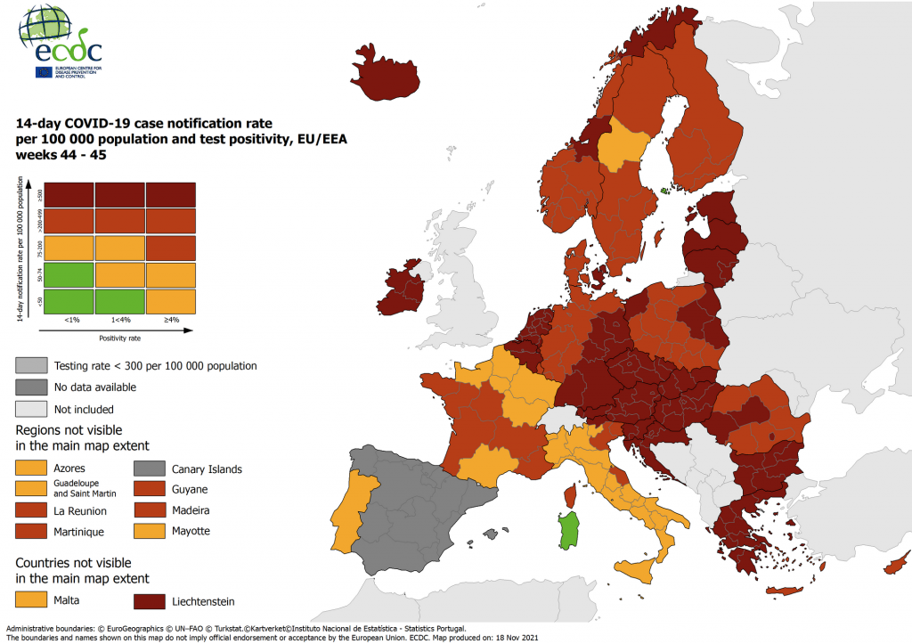 Si ricordi che il Centro europeo per la prevenzione e il controllo delle malattie aggiorna la mappa del rischio Covid ogni settimana di giovedì sulla base dei dati ricevuti fino al martedì precedente con le restrizioni da imporre sulla libera circolazione dei cittadini nell’Ue.