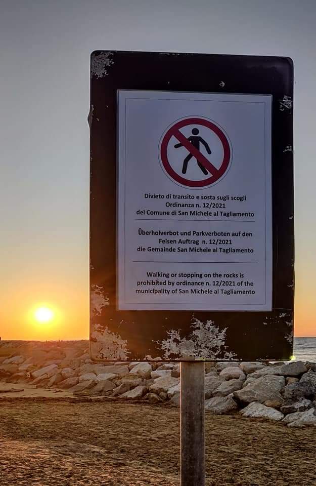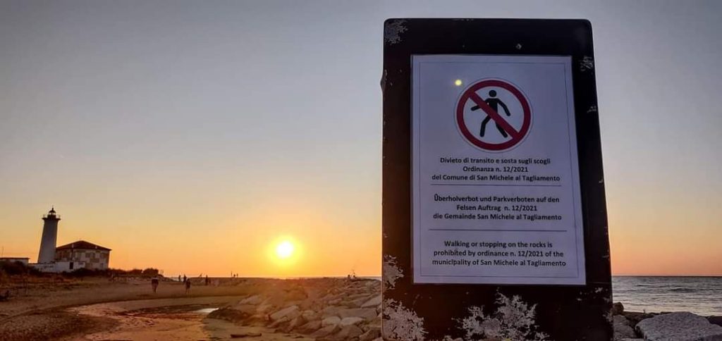 BIBIONE. La novità è di questa mattina, martedì 7 settembre 2021, quando con l'installazione di alcuni cartelli l'amministrazione di San Michele al Tagliamento rende noto a residenti e turisti la nuova ordinanza numero 12/2021 con la quale si istituisce il divieto di transito e sosta sugli scogli in prossimità del faro di Bibione.