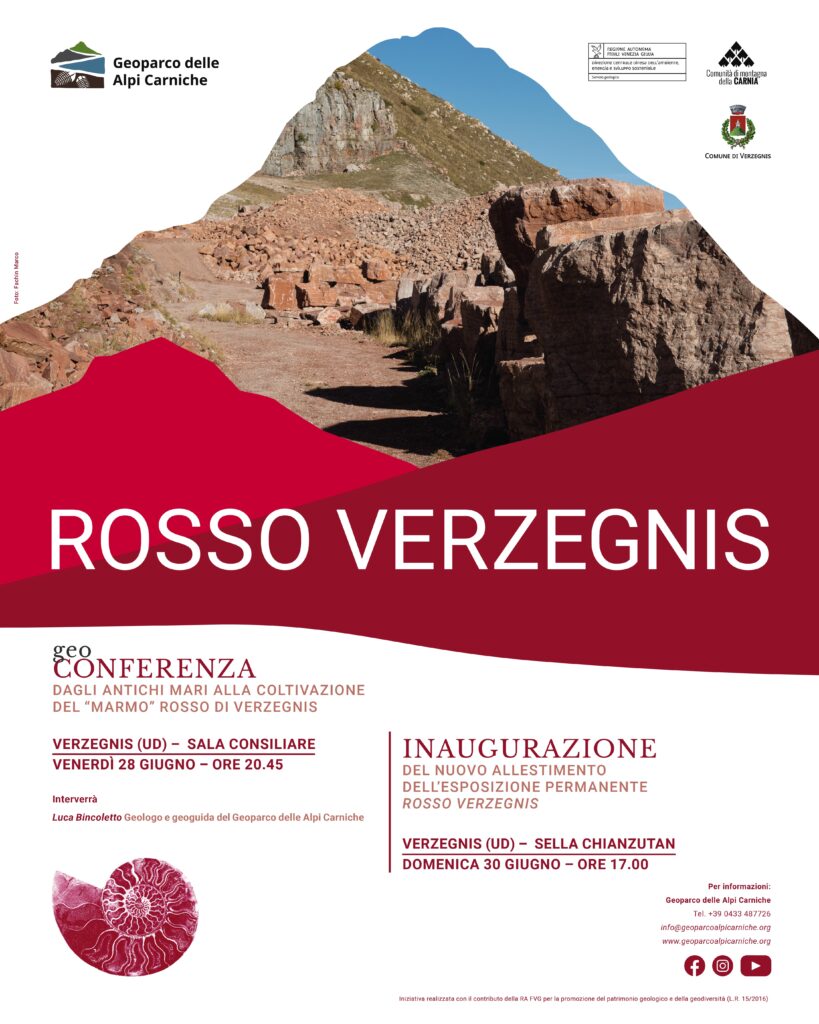 A completare l'offerta culturale legata all'inaugurazione, questa sera, venerdì 28 giugno, alle ore 20.45, si terrà una conferenza sul tema Rosso Verzegnis presso la sala consiliare del municipio di Verzegnis. L'ingresso è libero e rappresenta un'ottima occasione per approfondire ulteriormente le conoscenze sul calcare rosso a Encriniti, con interventi di esperti del settore.