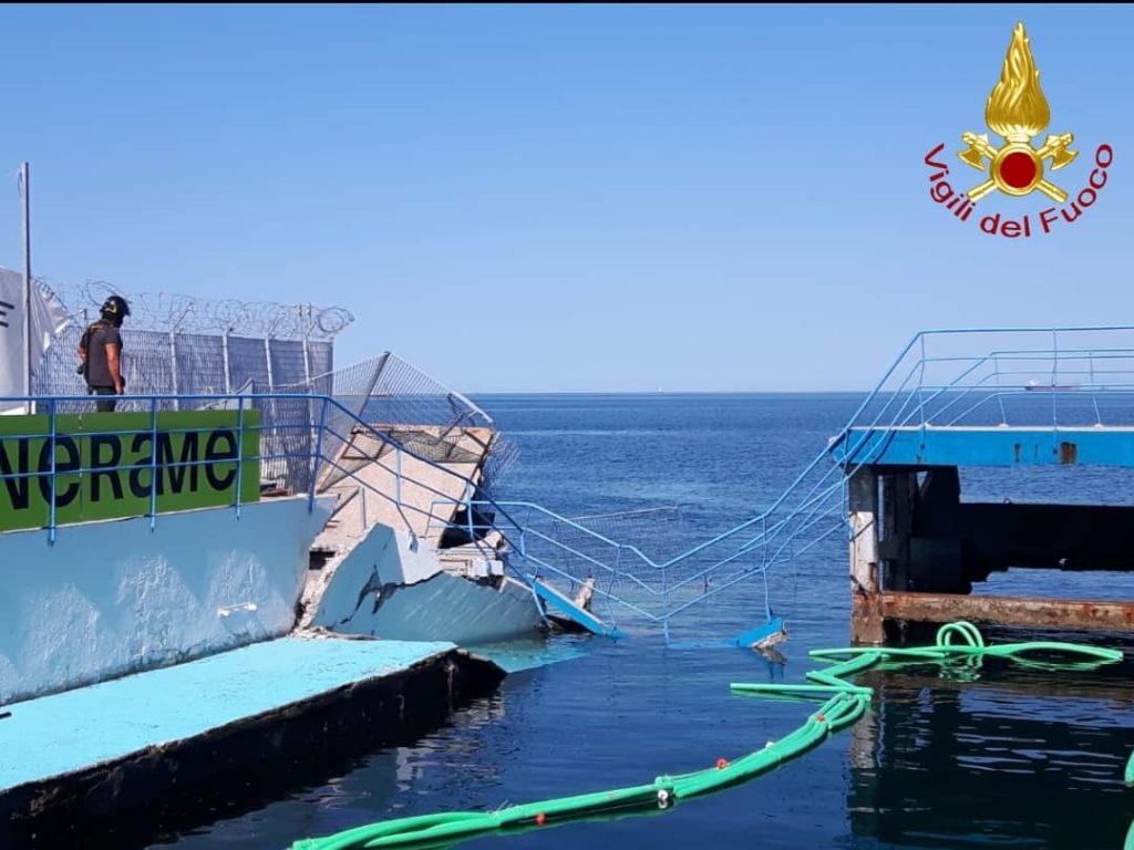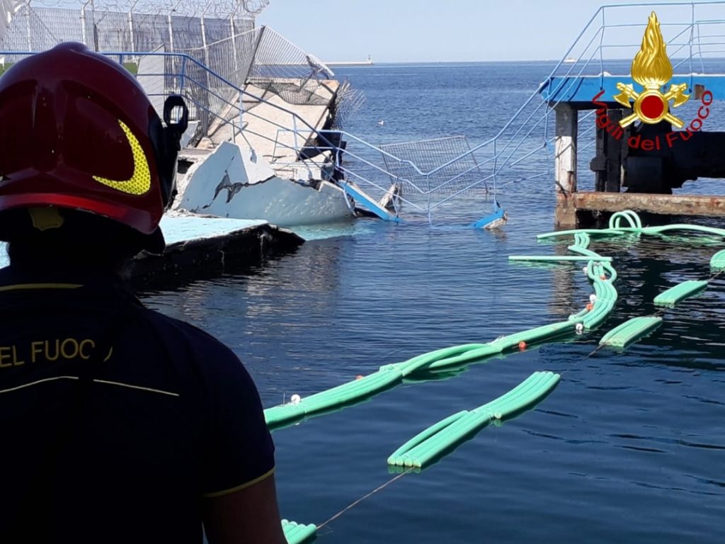 Sul posto la prima squadra e il funzionario di guardia della sede centrale del comando provinciale Vigili del fuoco di Trieste, intervenuti presso lo stabilimento Ausonia in Riva Traiana 1, per il crollo del pontile.