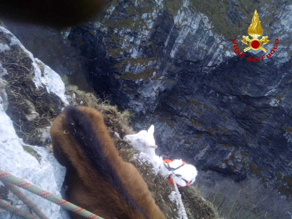 A causa della conformazione del terreno, pareti verticali, le operazioni di soccorso si sono rilevate particolarmente complesse ma grazie alla perizia e alla costante preparazione dei tecnici SAF delle squadre dei Vigili del fuoco gli animali, che ormai erano stremati e al limite della sopravvivenza sono stati portati in salvo.
