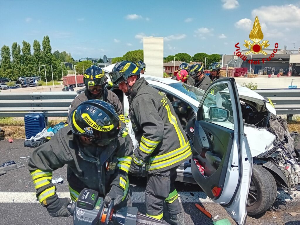 PADOVA. Da poco prima di mezzogiorno, di sabato 20 luglio, i vigili del fuoco stanno operando in autostrada A4 tra gli svincoli dell’allaccio dell’A13 e Padova Est per un incidente stradale tra cinque auto, un furgone frigo e un mezzo pesante: una persona deceduta e sette feriti.