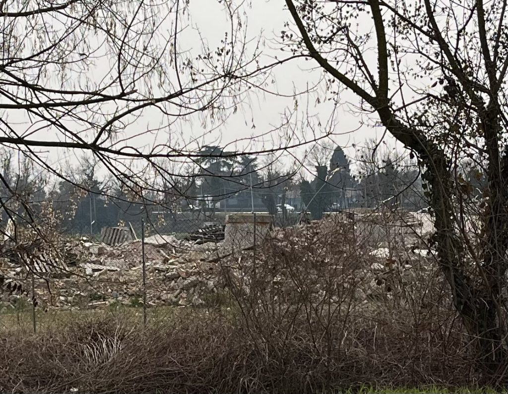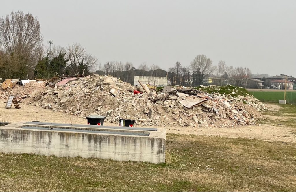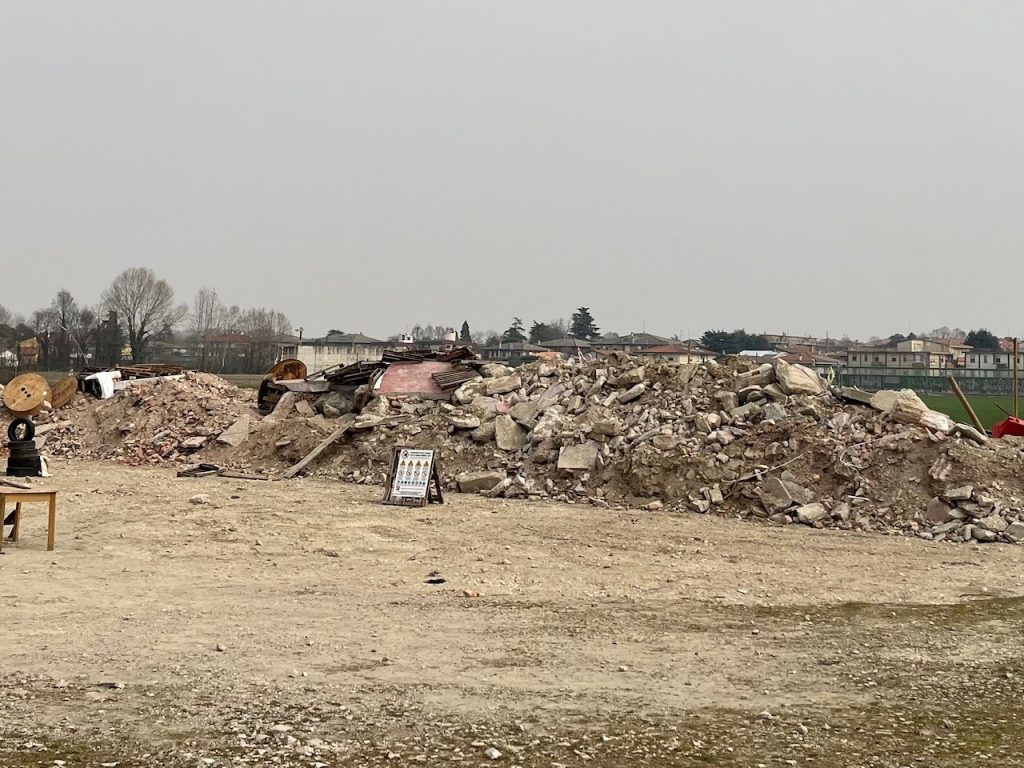 Per ricreare uno scenario realistico, è stata riversata una imponente quantità di macerie tali da formare diverse montagnole, per una lunghezza di circa 100 metri. Purtroppo quest’area è comunemente chiamata da molti residenti ‘la discarica’.