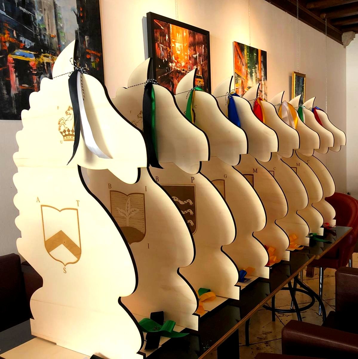 II – Le due rappresentative ammesse andranno a costituire due squadre che si affronteranno disponendo ciascuna di una quaterna di pedine equestri di legno o Barbari, di proprietà del Fogolâr Civic di Udin, simulacri intitolati idealmente a quattro tra i Comuni rustici più antichi inclusi nelle rispettive municipalità capoluogo, quindi, per Udine, le Decanie o Ville Inferiore/Disot (detta anche Aquileia/Olee) e Superiore/Disore (detta anche Gemona/Glemone), Grazzano/Graçan e Pracchiuso/Praclûs; per Codroipo, le Ville di Beano/Bean, Biauzzo/Blauç, Pozzo/Poç e Zompicchia/Çupicje. Ogni squadra assegnerà ciascuna delle proprie pedine ad un delegato ovvero Barbaresco, anche eventualmente coadiuvato da staff di Aiutanti nel numero massimo di 6, di cui è necessario elenco numerato.