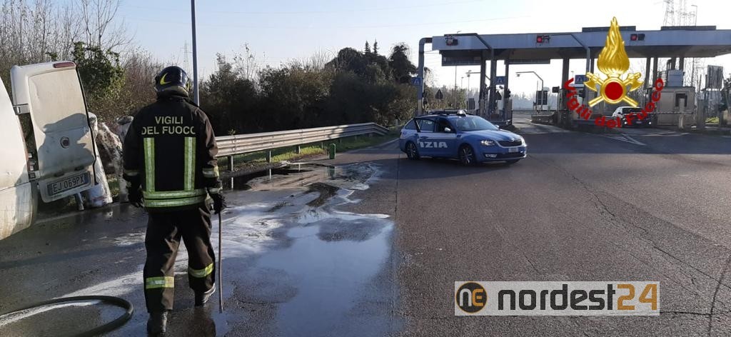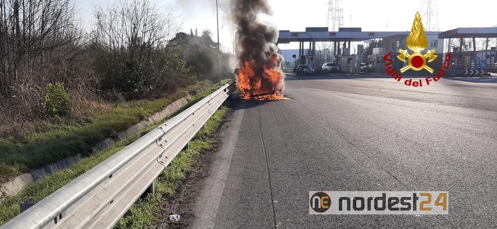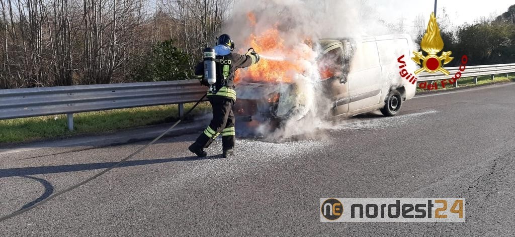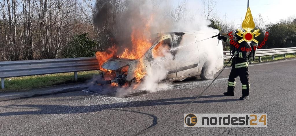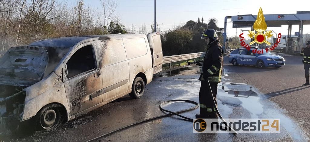 Poco prima delle 14:00, i vigili del fuoco sono intervenuti all’uscita del casello autostradale di Padova zona Industriale per l’incendio di un furgone che trasportava abbigliamento: illeso l’autista.