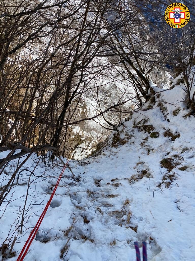 Fortunatamente illeso, era però agitato, così i soccorritori hanno prima provveduto a calmarlo, lo hanno assicurato con un cordino alla pettorina e lentamente si sono calati con lui altri ottanta metri, mentre una seconda squadra andava loro incontro dal basso, battendo la pista nella neve per facilitare il rientro.