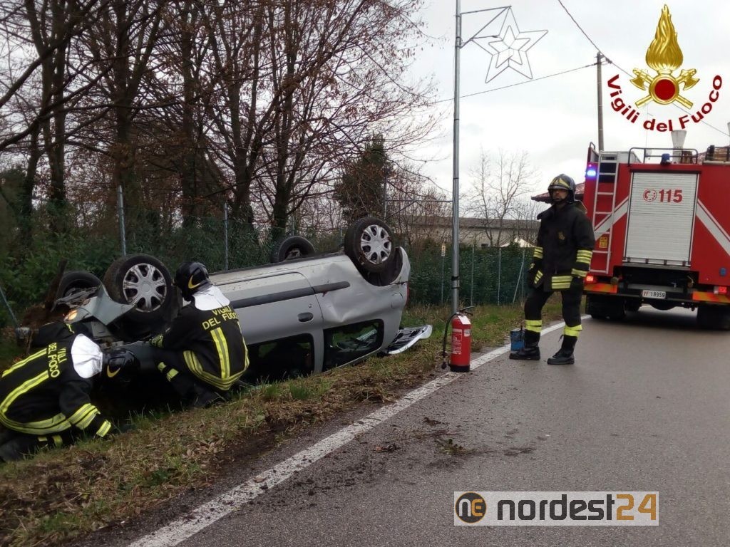 La prima partenza dei Vigili del Fuoco del Comando di Pordenone è intervenuta alle 13 di oggi per un autovettura che è uscita di strada rovesciandosi all'interno del fosso lato strada, lungo Via Visinale Centro in comune di Pasiano.