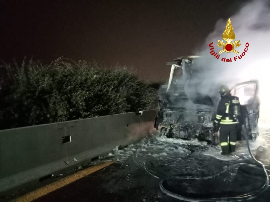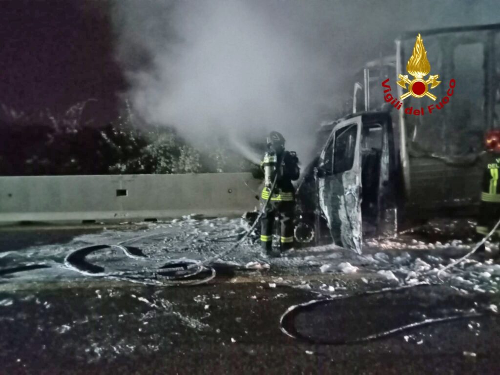 Il conducente, veronese del mezzo che trasportava pezzi meccanici, ha sentito un forte rumore provenire dal motore. Si è fermato appena possibile ed è sceso, mentre il furgone ha preso fuoco.