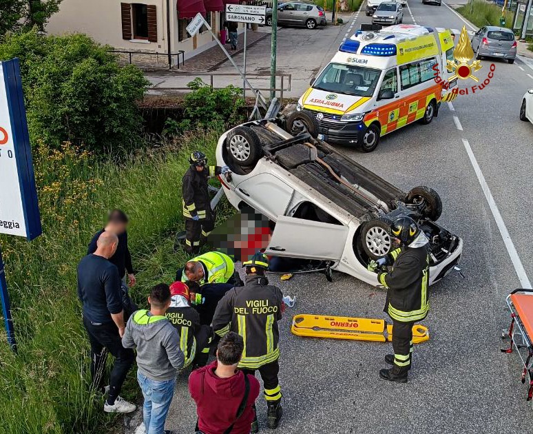 Pauroso incidente, l'auto si ribalta: conducente e bimbo rimangono incastrati