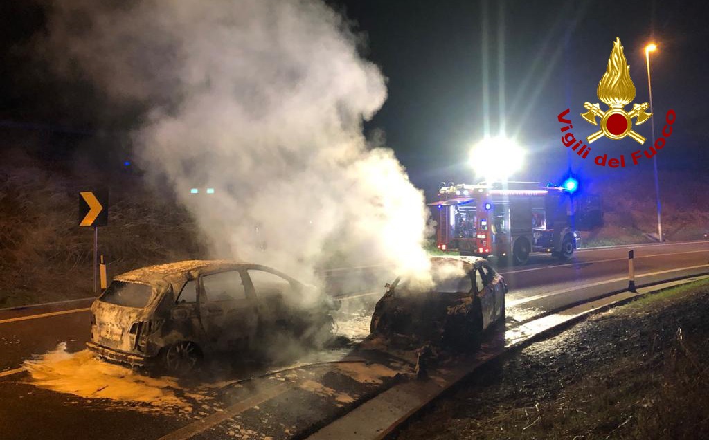 Durante la notte, poco prima delle 1 di oggi sabato 11 marzo 2023, i vigili del fuoco sono intervenuti nel tratto stradale di interconnessione tra la superstrada pedemontana Veneta e l’A31 nel territorio di Villaverla per lo scontro semi frontale tra due auto, che hanno subito preso fuoco: illesi gli autisti.