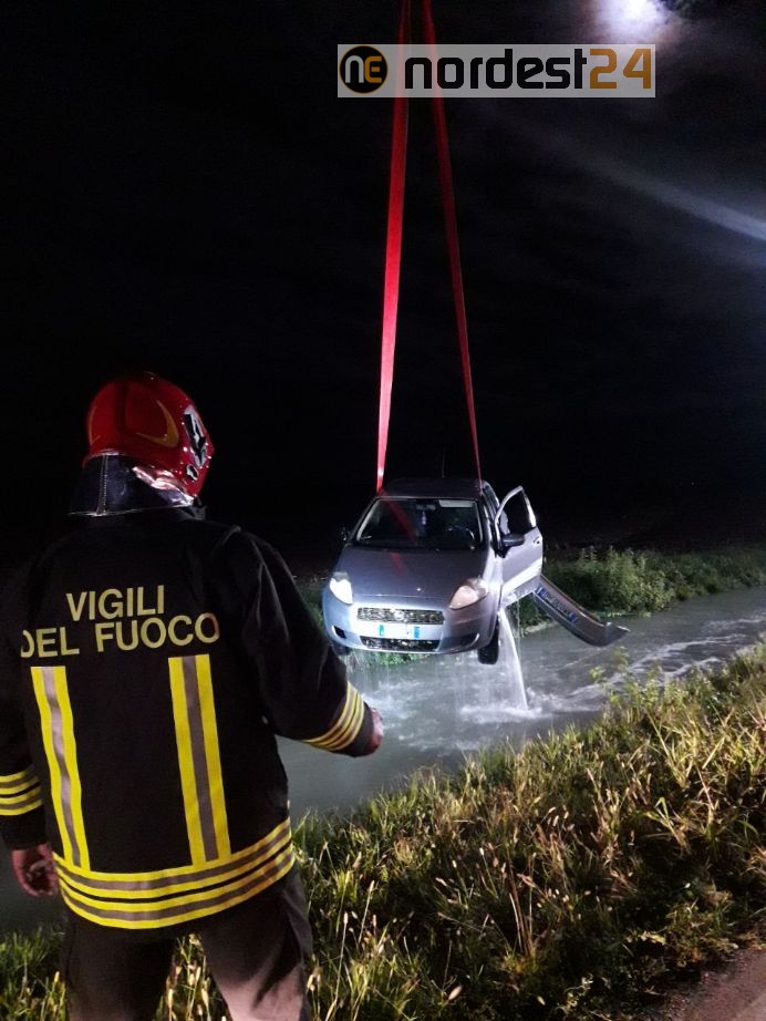 Intervento di una squadra del comando dei vigili del fuoco di Udine alle 22,00 di ieri sera lunedì 28 settembre 2020 per il recupero di un'autovettura Fiat Punto uscita di strada e finita all'interno di un canale che costeggia via Garibaldi a Pavia di Udine.
