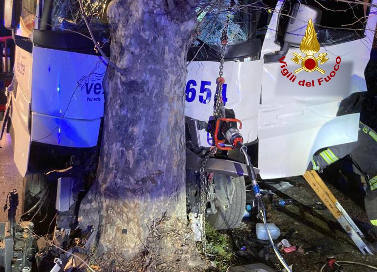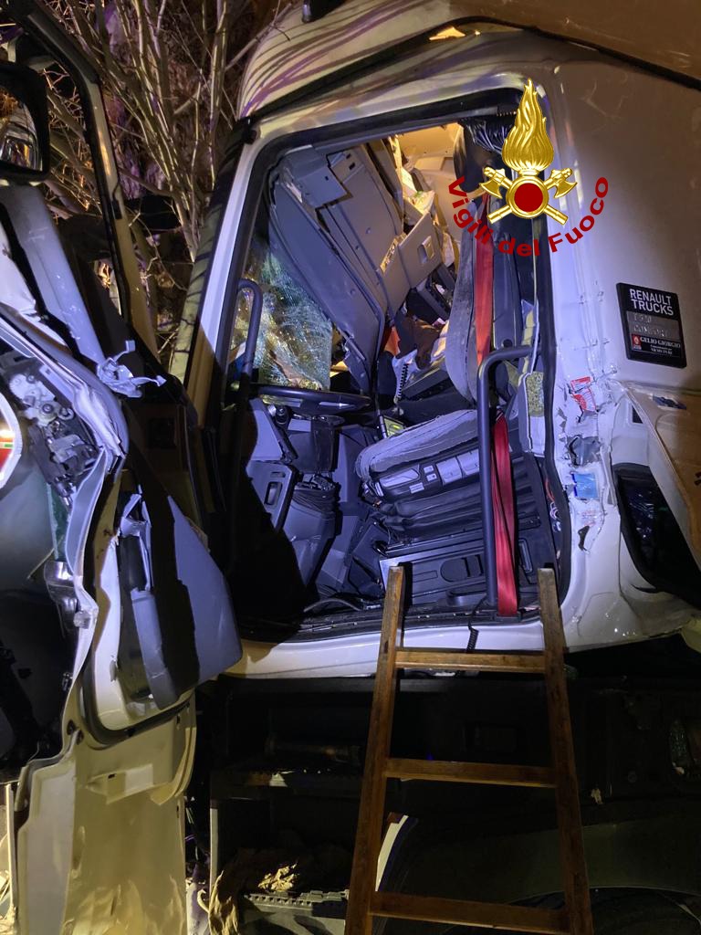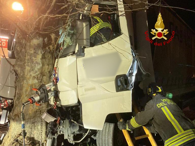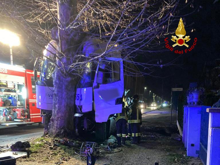 La notte scorsa, poco prima delle 4, i vigili del fuoco sono intervenuti in via Garibaldi in località Busa nel comune di Vigonza in provincia di Padova per un camion finito contro un albero dopo la perdita di controllo del conducente rimasto ferito. I pompieri arrivati da Padova e Mestre con l’autogrù, hanno messo in sicurezza il mezzo che trasportava generi alimentari ed utilizzando cesoie, martinetti e divaricatori idraulici estratto non senza difficoltà l’autista, rimasto incastrato nella cabina di guida.