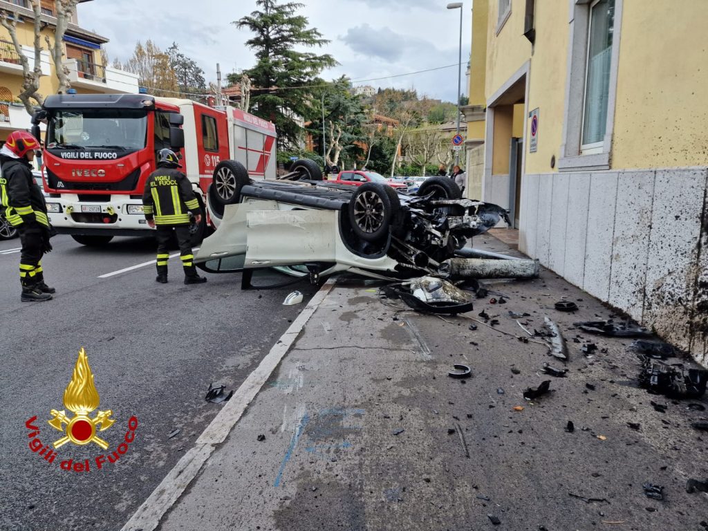 Arrivati sul posto, gli operatori hanno trovato un'autovettura che, per cause ancora da accertare, ha perso il controllo autonomamente e, andando a sbattere contro un palo dell'illuminazione pubblica, si è rovesciata.