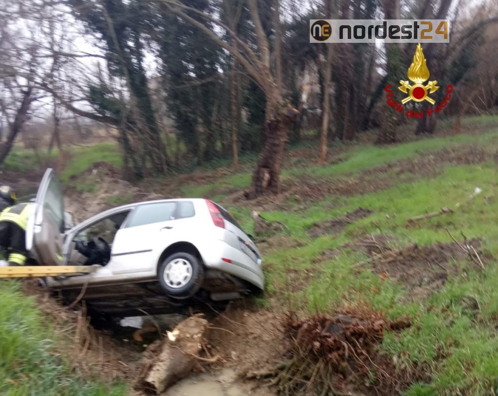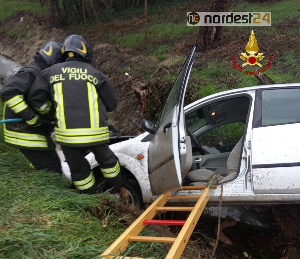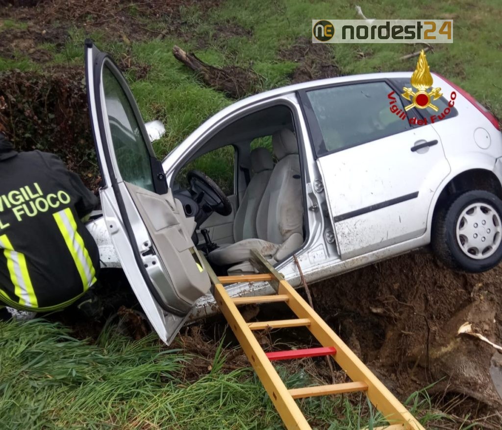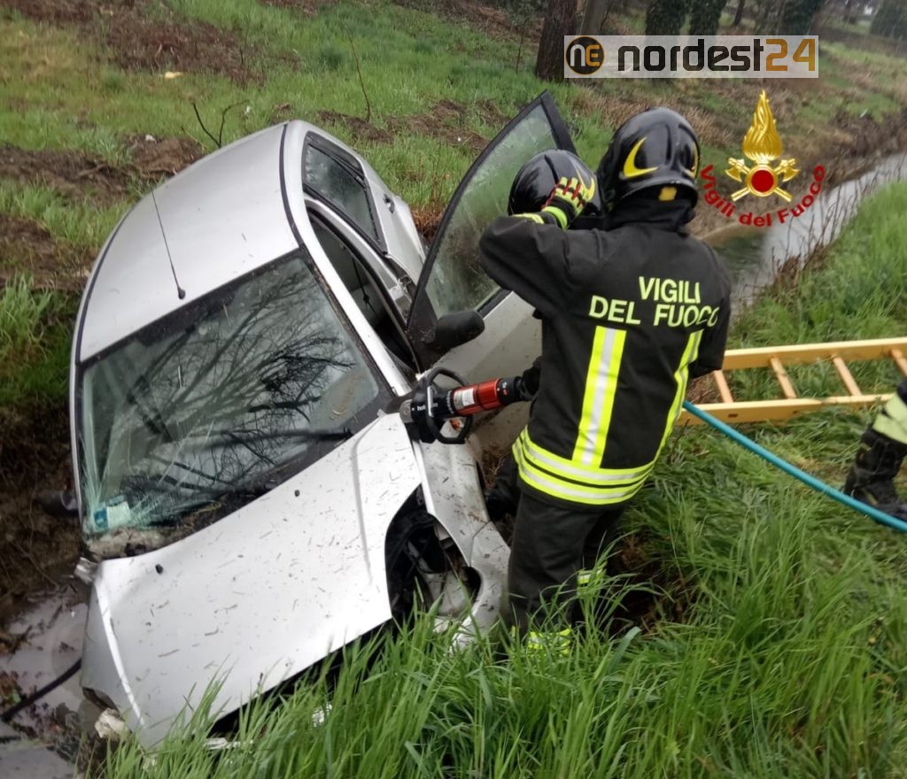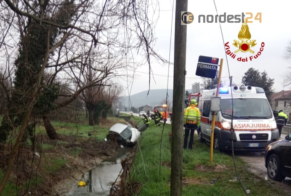 I pompieri arrivati da Lonigo hanno estratto la conducente, rimasta incastrata nell'abitacolo dell'auto finita in un fossato a bordo strada.